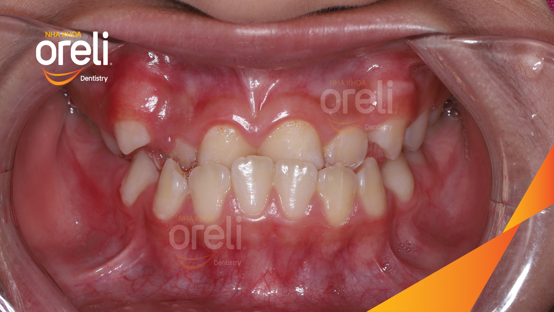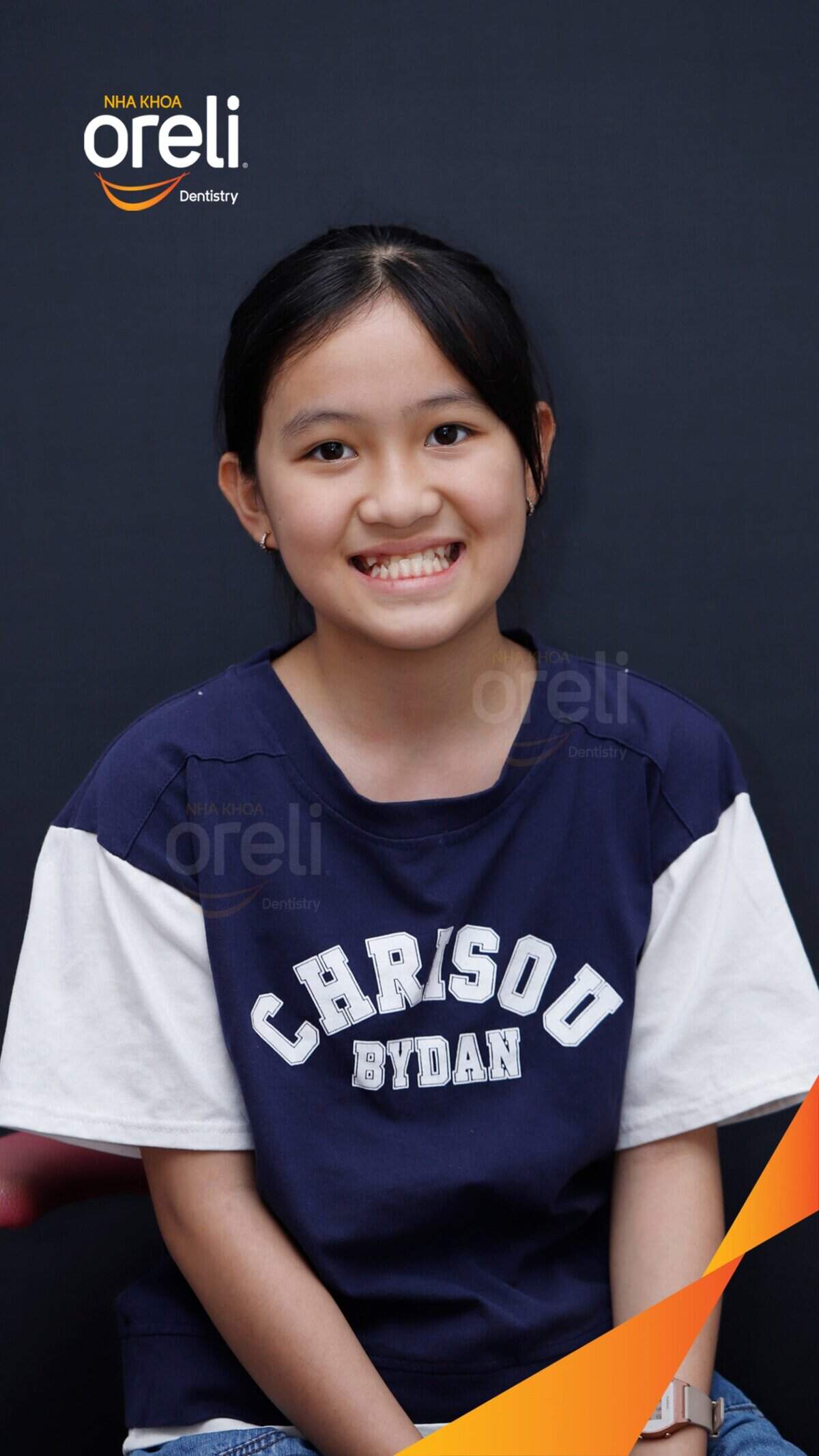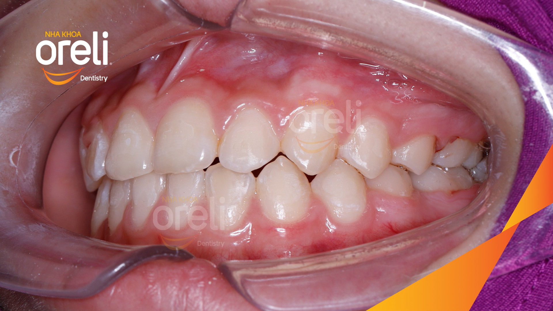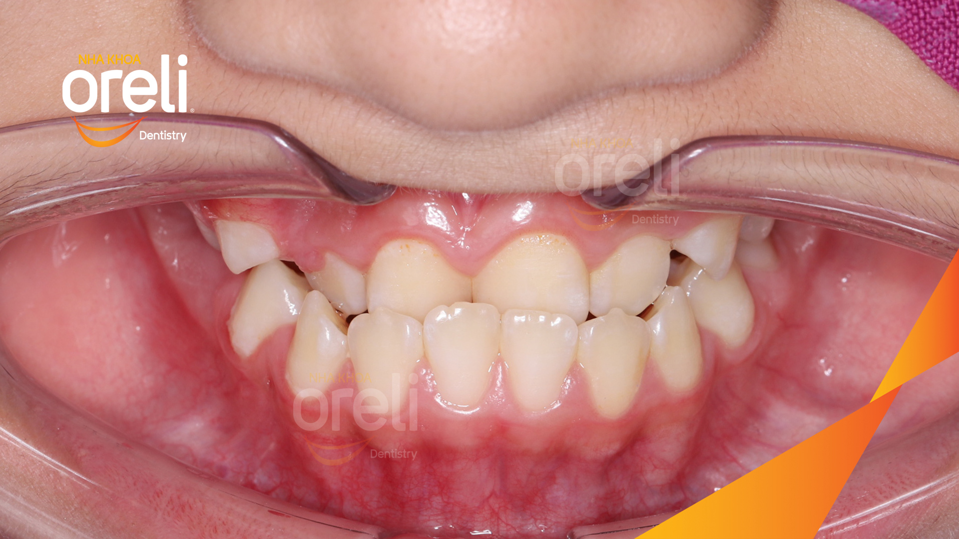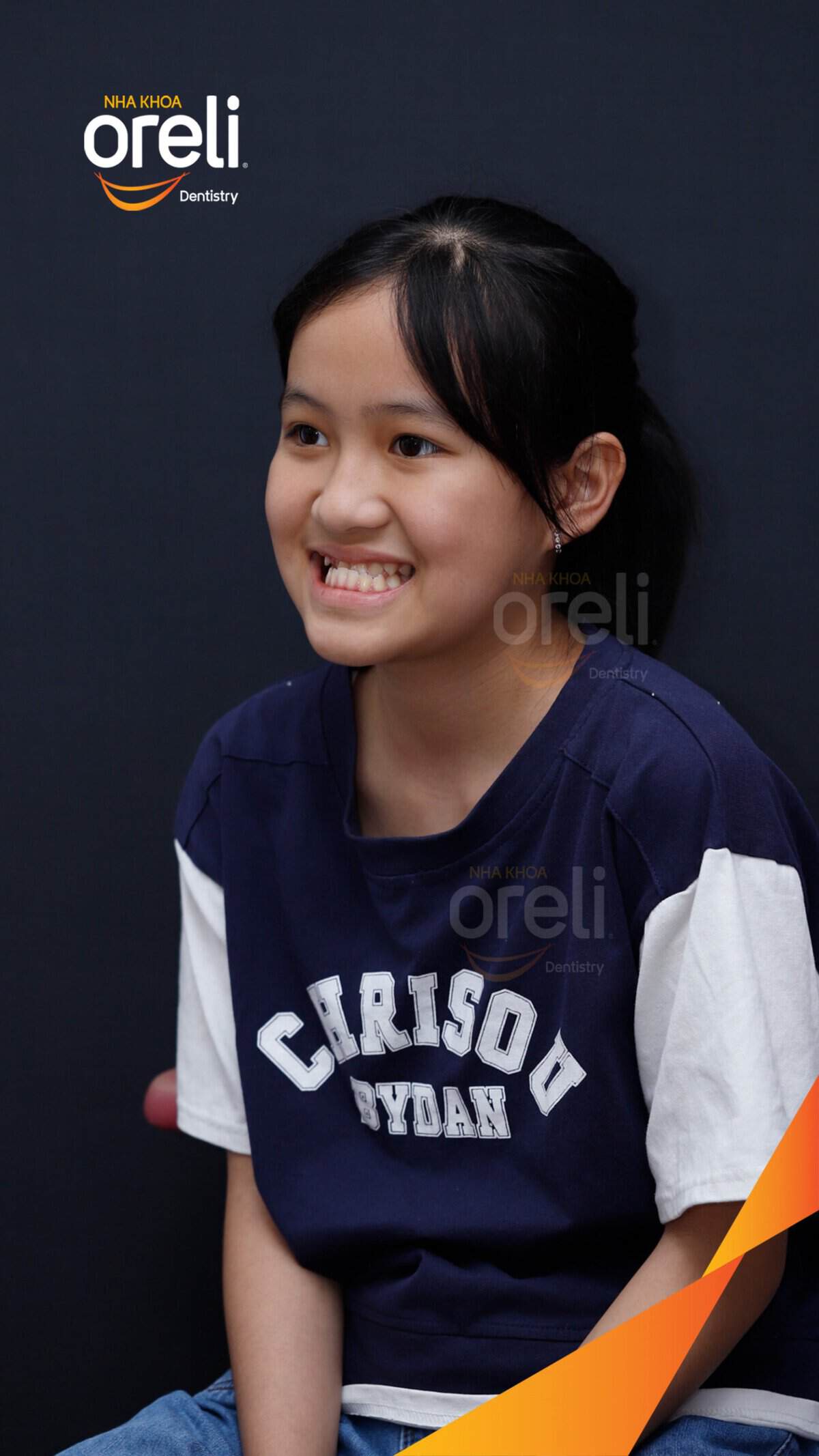 Ca niềng răng móm phục hồi ăn nhai và thẩm mỹ nụ cười. Kết quả thực tế trước và sau điều trị tại Nha khoa Oreli Buôn Hồ.