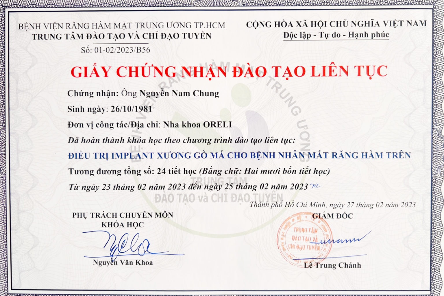 | Chuyên môn | Implant & Niềng răng |