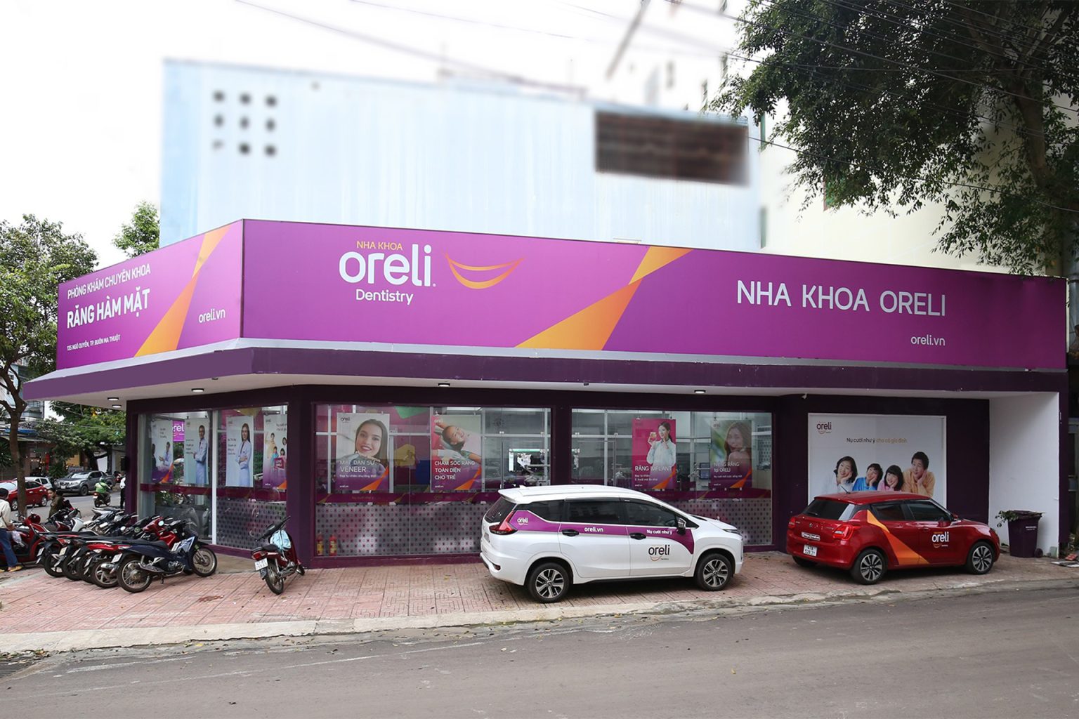 Chi nhánh trung tâm Nha khoa Oreli tại Buôn Ma Thuột với cơ sở khang trang và nhận diện thương hiệu nổi bật.